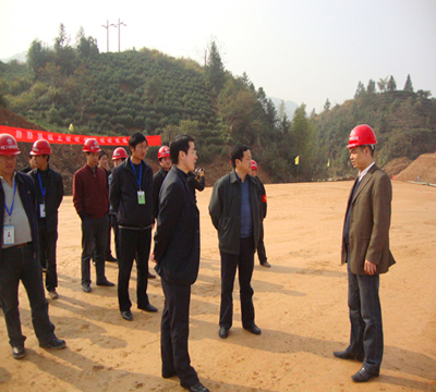 在牯牛降互通区工程施工现场,李俊杰副总亲切看望了一线施工人员并与大家一一握手,在认真察看了工程平面布置图后,李俊杰副总详细听取了项目部负责人对牯牛降互通区工程建设情况的汇报,对该工程各项工作的有序推进表示肯定,并要求项目部牢固树立质量意识和安全意识,强化工程进度和投资控制,努力把项目建设成一条经济高效的景观路、精品路,切实把黄祁高速公路建设好。