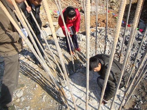 首件工程为K78+843大北埠1号大桥左幅7-2号桩基,按嵌岩桩设计,采用冲击钻成孔,桩长14m,桩径1.5m,C35水下砼浇筑,今年11月12日开始施工,11月18日完成桩基。经总监办人员现场检测,桥梁桩基各项技术指标均符合设计及规范要求,工程质量良好。
