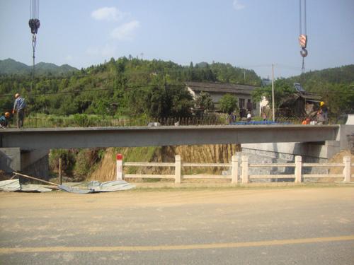 2010年5月2日上午,随着一阵鞭炮声响起,黄祁高速12标大北埠改线中桥第一片20m预应力空心板梁开始安装,本桥梁板均采用吊车进行安装,梁板(边板)单片重量约35T。3日上午,全桥9片梁板顺利安装完成。