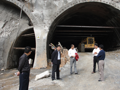丁处长一行在方家坞隧道检查工作
