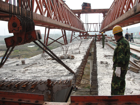 最后一片箱梁即将合龙