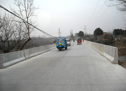 由于该工程地理位置特殊,施工场地狭窄,给老桥拆除带来很大困难,同时由于场地限制,大梁预制场地不得已选择在距该桥有5公里之远处,且长22.2米的T梁(每片重约50吨)运输及存放也成为一个施工难点。面对施工任务重、工期紧、大梁运输及吊装等不确定的安全因素,为确保工程尽快建成通车,自今年9月19日开始封桥施工以来,我处上下同心协力,精心组织,分管副处长长驻工地,亲自抓工程质量和工程进度,实行工程施工倒计时,将施工计划排到每一天,抢进度,重质量,保安全,提前完成了世行办下达的施工任务,向业主和当地居民交了一份完美的答卷。