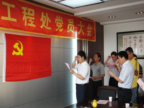 会议票决通过了1名同志按期转为中共正式党员,2名同志被吸收为中共预备党员。随后,在党支部副书记潘忠福同志的带领下,新党员面对鲜红的党旗宣誓,参加会议的其他党员再一次重温了入党誓言。