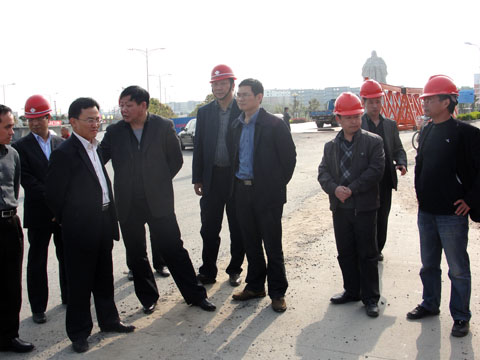 2013年4月8日,省政府督查室副主任殷尚一行在市交通局、公路局领导的陪同下,到潜山车轴寺大桥施工现场进行专项督查。 一行人听取了现场办、项目部对本项目建设情况的总体汇报,再到工地进行实地察看。在查看梁片预制场和桥墩施工现场后,对该工程的工程进展、质量以及安全管理各方面工作给予了充分肯定。并要求工程施工单位在确保工程进度的同时,加强质量监控管理,强化安全责任意识,为大桥的顺利开通创造有利条件。