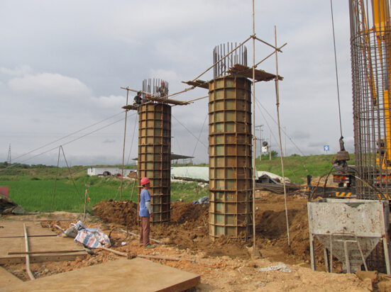 进入8月下旬以来,S212皖河大桥通过夏季高温的大干热潮,即将进入新一轮秋季施工高潮。目前工地已完成对3#墩墩柱砼浇筑、4#墩承台钢筋绑扎及砼浇筑工作,现在正在进行4#墩墩身钢筋制作及绑扎、2#墩盖梁钢筋制作及绑扎,20#~26#墩系梁开挖并且已通过了桩检。项目部正按施工组织计划着手进行系梁和墩柱的施工作业。