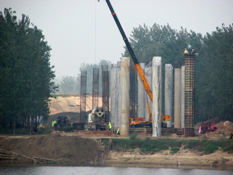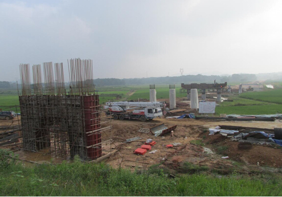 目前S212皖河大桥项目围绕着墩柱、盖梁及主墩墩身施工为重点,全力推进工程建设,确保主墩悬臂箱梁在规定的计划内开始施工,已完成立柱20根。