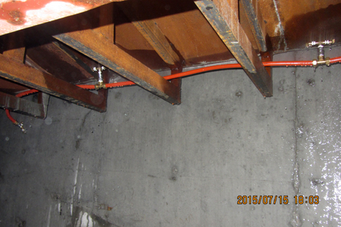 自7月13日进入初伏天以来,气温随即攀升,高温时节已到来,给主桥挂篮悬浇箱梁施工的养护工作带来了困难,仅靠人工洒水已达不到养护要求。经项目部组织到中交二航局承建的皖河大桥参观、学习和借鉴施工经验,在主桥挂篮悬浇施工中采用喷淋养护工艺,对箱梁进行全方位的系统养护。使施工成品得到了及时、全覆盖的养护,提升了悬浇箱梁的成品质量。