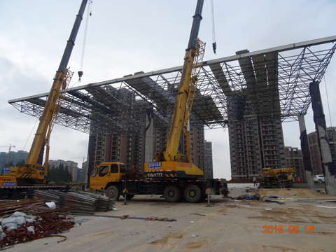 该项工程自8月5日开始,施工过程中正值高温酷暑时节,项目部将高温安全施工保障措施放在首位,精心准备,科学施工,顺利地将重约20吨的网架安全吊装成功。