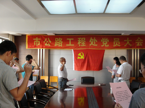 这次会议有三项议程。首先,由支部书记潘忠福同志给全体党员上党课,深入学习“三严三实”专题教育,要求全体党员能自觉践行“三严三实”,以实际行动促进我处工程建设事业又好又快发展。其次,何正仪同志宣读转正申请,其入党介绍人向大会汇报该同志考察情况,其他党员就何正仪同志的表现各自发表意见,之后会议表决全票通过何正仪同志由预备党员转为正式党员。最后,潘书记带领与会党员面向党旗重温了誓词和新党员入党宣誓。