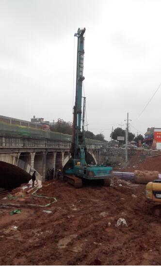 自该工程中标以后,项目部人员克服各种不利因素,迅速组织施工。因为该地区位于县城,受环境限制,项目部决定采用旋挖式钻机进行桩基作业。旋挖式钻机施工,具有进度快,施工简便,振动小等优点。自1月13日开始施工以来,截止目前,项目部已完成钻孔灌注桩18根,有效的保证了工程进度。