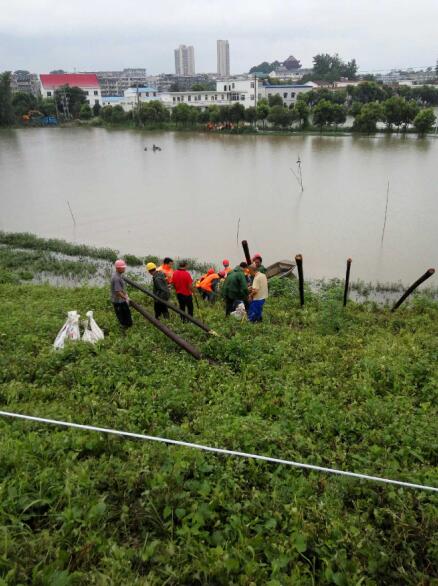 7月4日下午,接上级通知,安庆交通局海事局枞阳船闸出现滑坡险情。我处迅速组织十六人打桩队赶赴枞阳全力抢险,于晚上10时左右平安顺利排除险情。7月7日晚7时,又接到险情通知,再次组织十人打桩队赶赴枞阳抢险并于8日早上3时排除险情返回安庆。